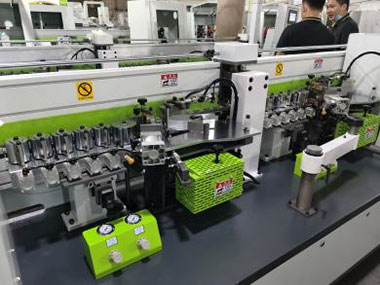 切斷板材兩頭的多余封邊帶(氣缸帶2個調(diào)壓閥1個泄壓閥)氣壓更穩(wěn)定,齊頭齊尾更穩(wěn)定. |