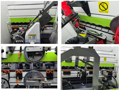 6輪壓貼貼合比4輪更精密,膠線輕微不跑帶,貼合牢靠,厚薄木皮均可輕松走帶,氣缸控制開關(guān)膠門,膠量穩(wěn)定,厚薄均勻。 |