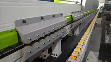 6輪壓貼貼合比4輪更精密,膠線輕微不跑帶,貼合牢靠,厚薄木皮均可輕松走帶,氣缸控制開關(guān)膠門,膠量穩(wěn)定,厚薄均勻。 |