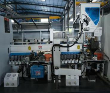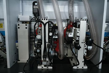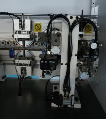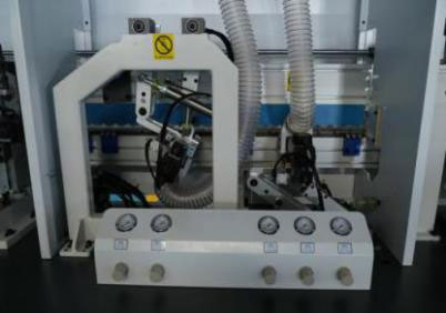 切斷板材兩頭的多余封邊帶(氣缸帶2個(gè)調(diào)壓閥1個(gè)泄壓閥)氣壓更穩(wěn)定,齊頭齊尾更穩(wěn)定. |